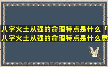 八字火 💮 土从强 🐱 是一种特殊命理组合,其特点如下: