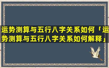 运势测算与五行八 🕷 字 🦢 的 🐴 关系