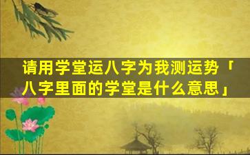 在算命中,"学"堂 🌵 指命主 🦁 学习、求、知考运方面的信息。