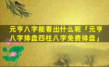 元 🌷 亨八字 🦆 排 🐦 盘免费算命命