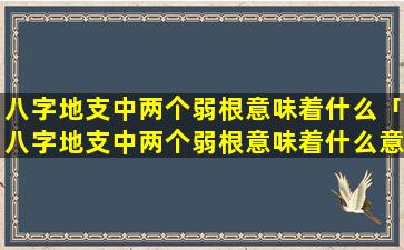 八字地支 🐅 中两个弱 🍀 根意 🦁 味着: