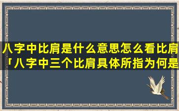 八 🌷 字中 🐎 三 🐘 个比肩具体所指: