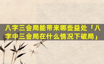 八 🐦 字三会局的益处 🐈