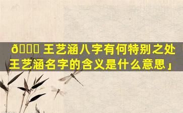 整体寓意:王艺涵这个名字寓意着拥 ☘ 有高贵显赫的家世,才艺,出,众,品味高雅包容宽广内涵丰富。