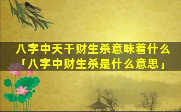在八字命理学中 🐝 ,天干财生杀指 🐛 的是日柱天干为财星(正财或偏财),而(月令地支为杀星正官或七杀)。这种格 🦟 局具有以下含义: