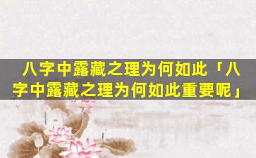 八 ☘ 字中 🐞 露藏之理在命理学中至关重要,原因如下: