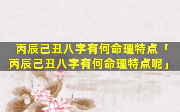 丙辰己 🐋 丑八字命 🐳 理特点