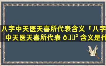 八字中天医或天喜 🌵 多现,其作用会更加明显。