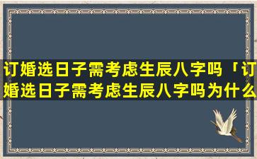 订 🐬 婚选日子需 🦈 考 🦟 虑生辰八字吗?