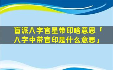 八字中带官印,是指一个人的八字命局 🐡 中同时带有官「星」和印「星」。
