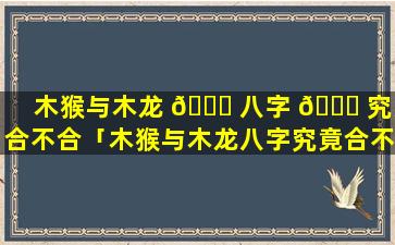 木猴与木龙八字 🐱 合 🦉 财 🐬 吗?
