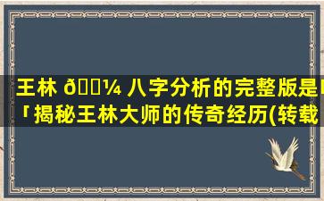 揭秘王林 🌻 大师 🐱 的传奇 🐠 经历