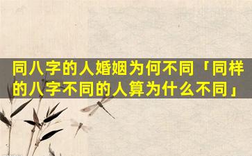 相同 🦟 八字的人 🦆 婚姻不同命运的原因 🐎 可能包括: