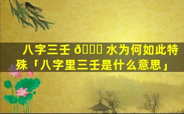 在八字算命中,“三壬”通,常被认为是一个比较特殊的情况可 🦆 能会对一个人的运势产生一定的影响。具。体的影响好坏则需要结合整个八字命盘来判断