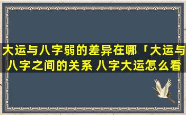 大运是阶段性的运势变化,影响个人的整体运势;八,字弱是终生的缺陷影响个人的体质性 🐦 、格和运势。虽,然八字。无法改变但可以通过大运和补救措施来缓解运势的起伏