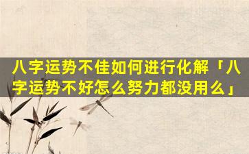 八字运势 🐱 不佳的化解 🐝 方法 🐟