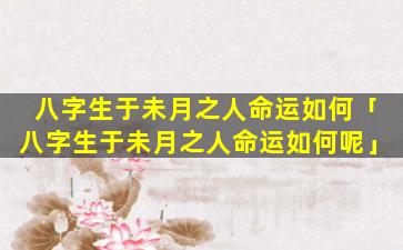 生于 🐧 未月的八 🐬 字 🐕 命运分析