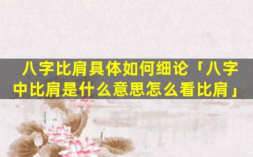 八字 🦍 比肩细论
