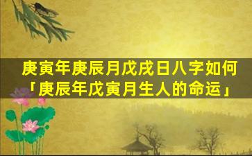 庚辰年戊寅月 🦈 生人的命 🦟 运