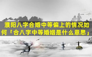 濮阳八 🐡 字合婚中等偏 🌳 上 🦊 的情况