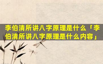 李伯清,著,名的中国相声演员在相声表演中经 🌴 常 🐶 穿插解说八字命理学的内容。他所讲的八字原理主要包 🐟 括以下几个方面: