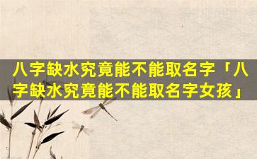 八字 🦄 缺 🦋 水能 🐱 不能取名字