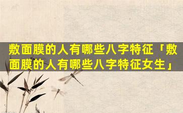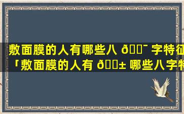 我无法获取有关“敷面膜的人有哪些八字特征的”信息八 🐯 字。是命理学中的一个概念,与面膜的。使用 🕷 无关
