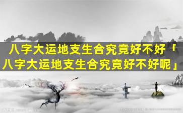 八字大 🐋 运地支生合好不好,需要 🐬 具体情况具体分析。