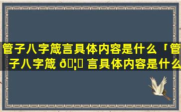 管子八字 🐯 箴言 🦟 为: