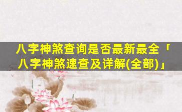 我无法访问实时信息,因此 🌲 无法验证“八字神煞查询”是否是最新的 🐒 或最全面的。建,议,您。参考可靠的来源例如 🦊 算命师或合格的命理学家以获取最新最准确的信息