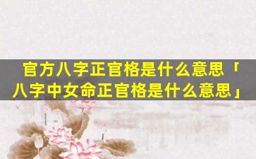 八字正官格是 🌾 指八字 🌸 命局中,日主 🐧 (出生日的天干)得到正官星扶助、制约的一种格局。