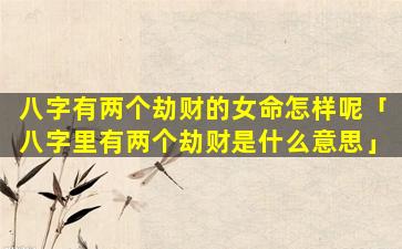 八字中 🐎 有两个劫财的女命命,运,如何 🐦 需要综合八 🐘 字中其他因素进行判断。
