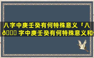 庚 🌸 壬癸三干 🐈 的特殊意义和作 🐈 用