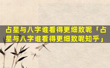 结论最终,谁看得更细致取决于所要分析问题的具体方面。如果需要分析性格、事、业,婚姻等相对固定的方面八字可 🐅 能更适合如果需要分析;心、理、情,感。人,际,关。系等动态变化的方面占星可能更适合两者各有优势互相补充 🐬 可以提供更全面的信 🐛 息和推断
