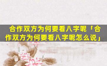 八字作为一种心理暗示,可以给合作双 🐱 方带来一定的信心和心理支撑。当,合作,双方。知道自己的八字与对方 🐵 契合或相生相合时会产生积极的心理影响促进合作的顺利进行