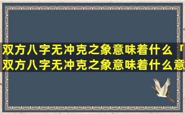 “双方八字无冲 🐟 克之象”意“味”着双方出生时的八字命格中没有相 ☘ 冲或相克的元素。