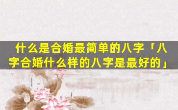 合婚 🦋 最简单 🦢 的八字 🐒 法