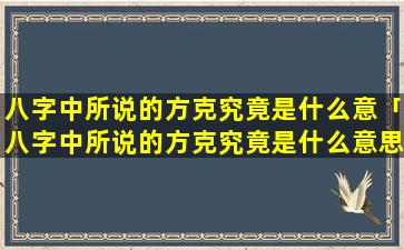 八字 🌷 中的“方 🐦 克”