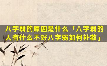 八字弱 🦢 有什么不好 🌳