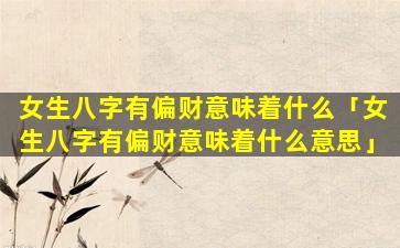 在八字命理中,“偏财 🌷 ”代表意外之财、横财、非正财。对 ☘ ,于女性而言八字有偏 🐠 财意味着: