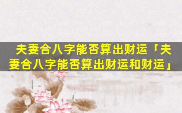 夫 🦢 妻八字 🐈 合 🦈 不合与财运的关系: