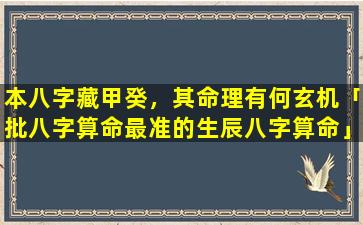 “本八字藏甲癸”意指一个八字中同 💮 时包含了甲 🐼 木和癸水这两种五行。在命理学中这种,组合具有以下玄机: