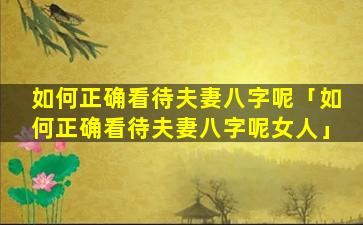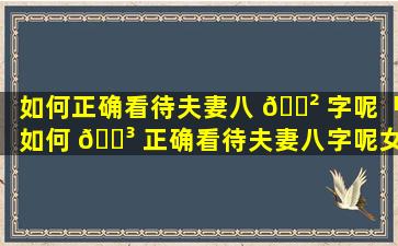 如 🕊 何正确看 🐧 待夫妻八字 🐅 (女)