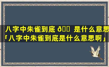 朱 🐈 雀在八字中的含义