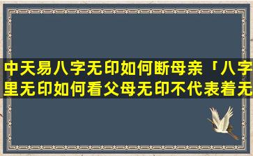 中天易八字 🦢 无印断母亲