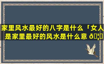 “女人是 🍁 家里最好的风 🐵 水”这句俗语有两种解释 🦟 :