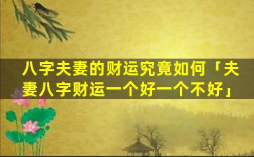 当夫妻俩的八字财运一个好一个不好 🐈 时,可能出现以下情况:
