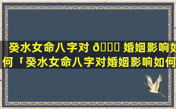 癸水女命 🦆 八 🦢 字对婚 🐳 姻的影响