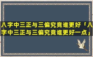 三正:关于三正与三偏谁更好的争论,并,没有一个明确的答案因为这取 🕸 决于个人的命局和具体情况。