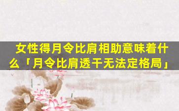 在八字命理中,女,性得月 🐅 令比肩相助通常有以下几种含义: